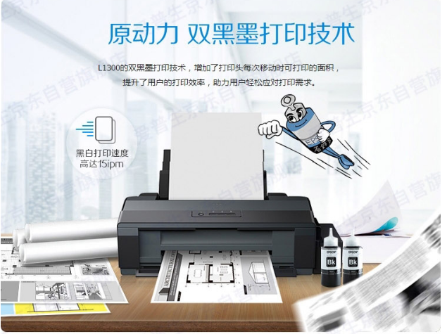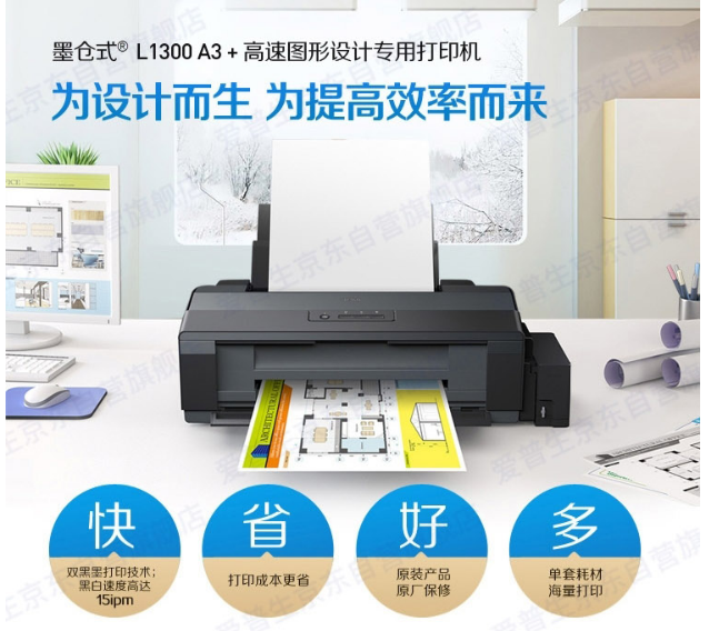 愛普生(EPSON)L1300 A3+大幅面墨倉式打印機工程CAD圖形設計專用彩色雙黑打印機 工業(yè)設備